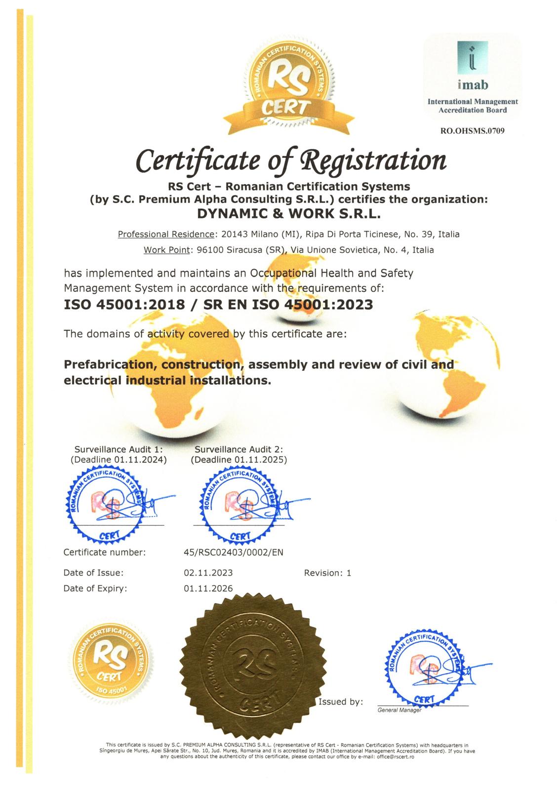• Implementazione di sistemi di gestione della sicurezza certificati secondo gli standard ISO 45001.